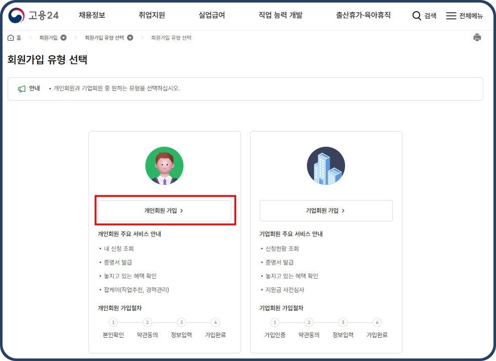 2. 내일 배움 카드 신청 방법 1단계(공동 인증서 등록)