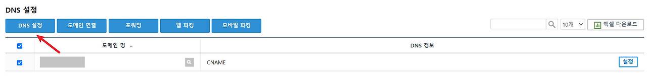 2. DNS설정에서 체크박스에 체크하고 DNS설정을 누른다.