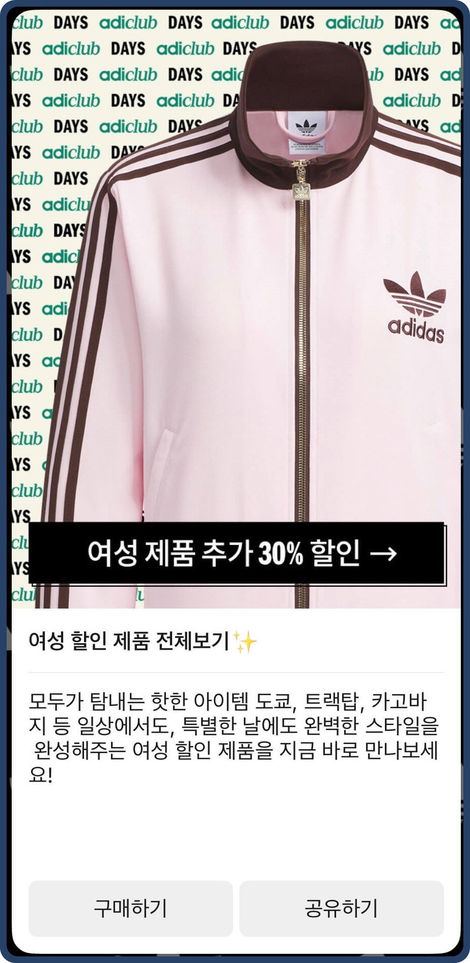 아디클럽 멤버십은 아디다스 제품을 정기적으로 구매하는 고객에게 특히 유리한 혜택을 제공합니다. 이번 기회에 가입하고 즉시 추가 30% 할인을 적용받으세요.