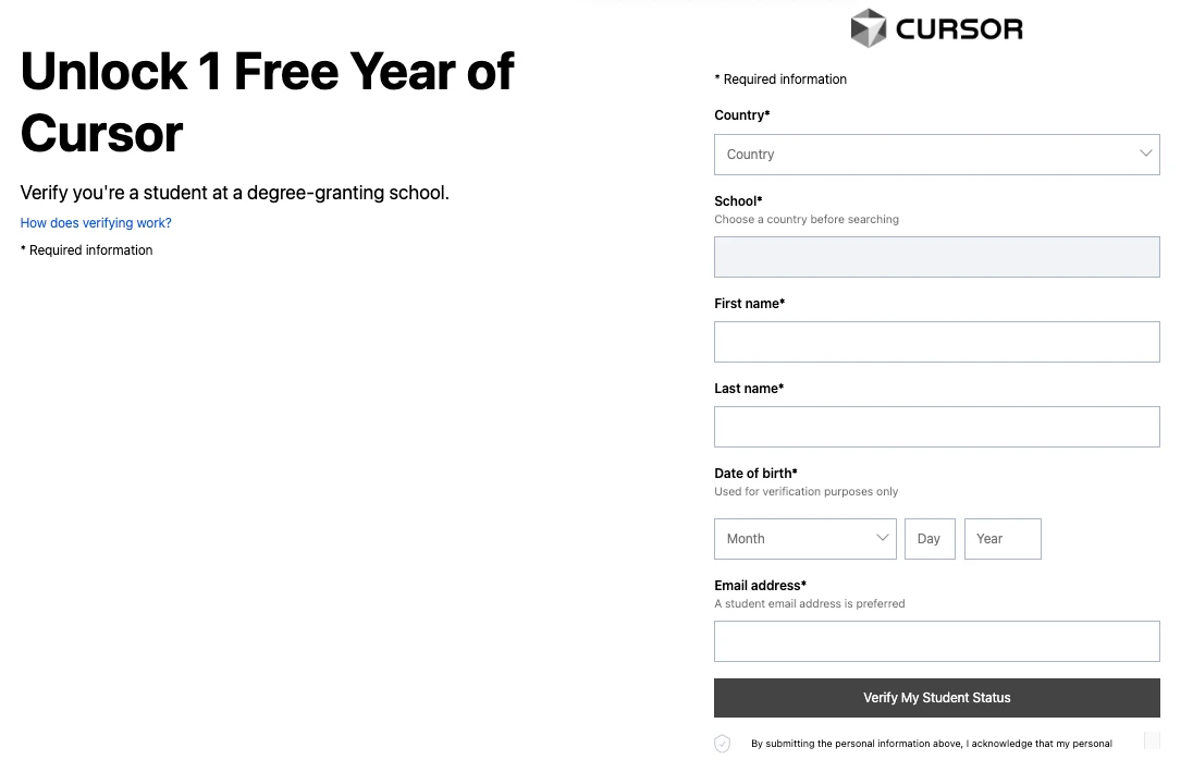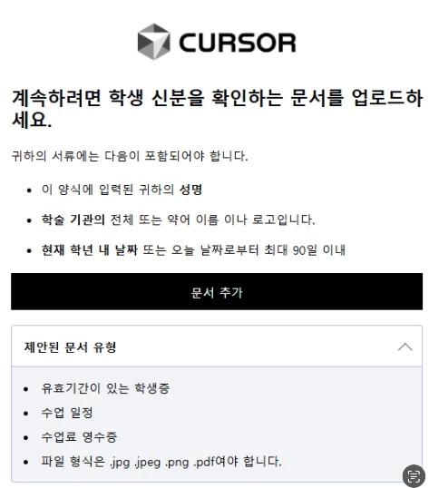 커서 AI의 학생 혜택을 받기 위한 인증 과정은 매우 간단하고 빠르게 진행됩니다. 몇 가지 단계만 따라하면 바로 프로 플랜을 무료로 사용할 수 있습니다.