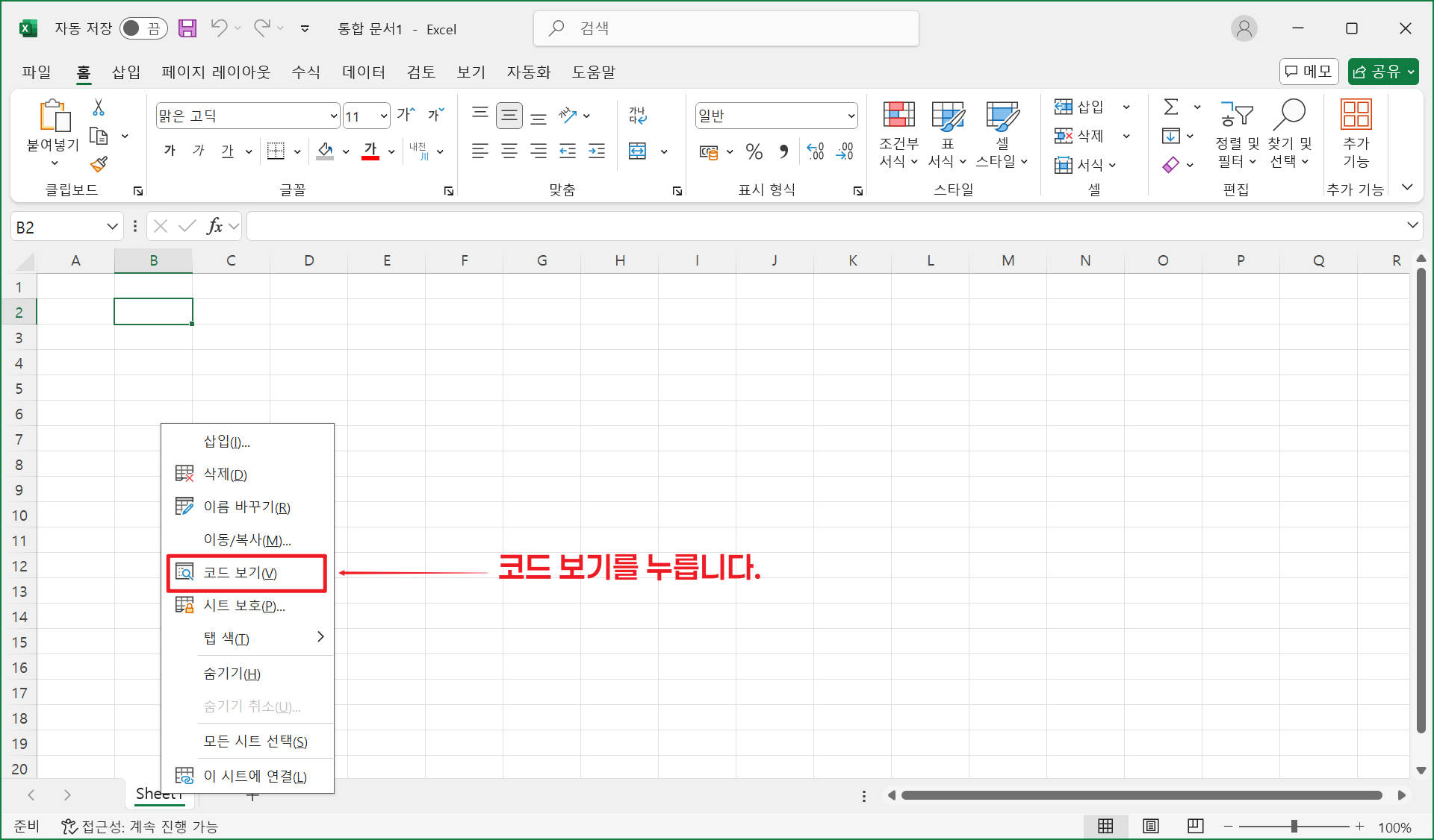 - 코드 직접 작성: ALT + F11로 VBE 열기 > 매크로 코드 작성 > 버튼에 할당