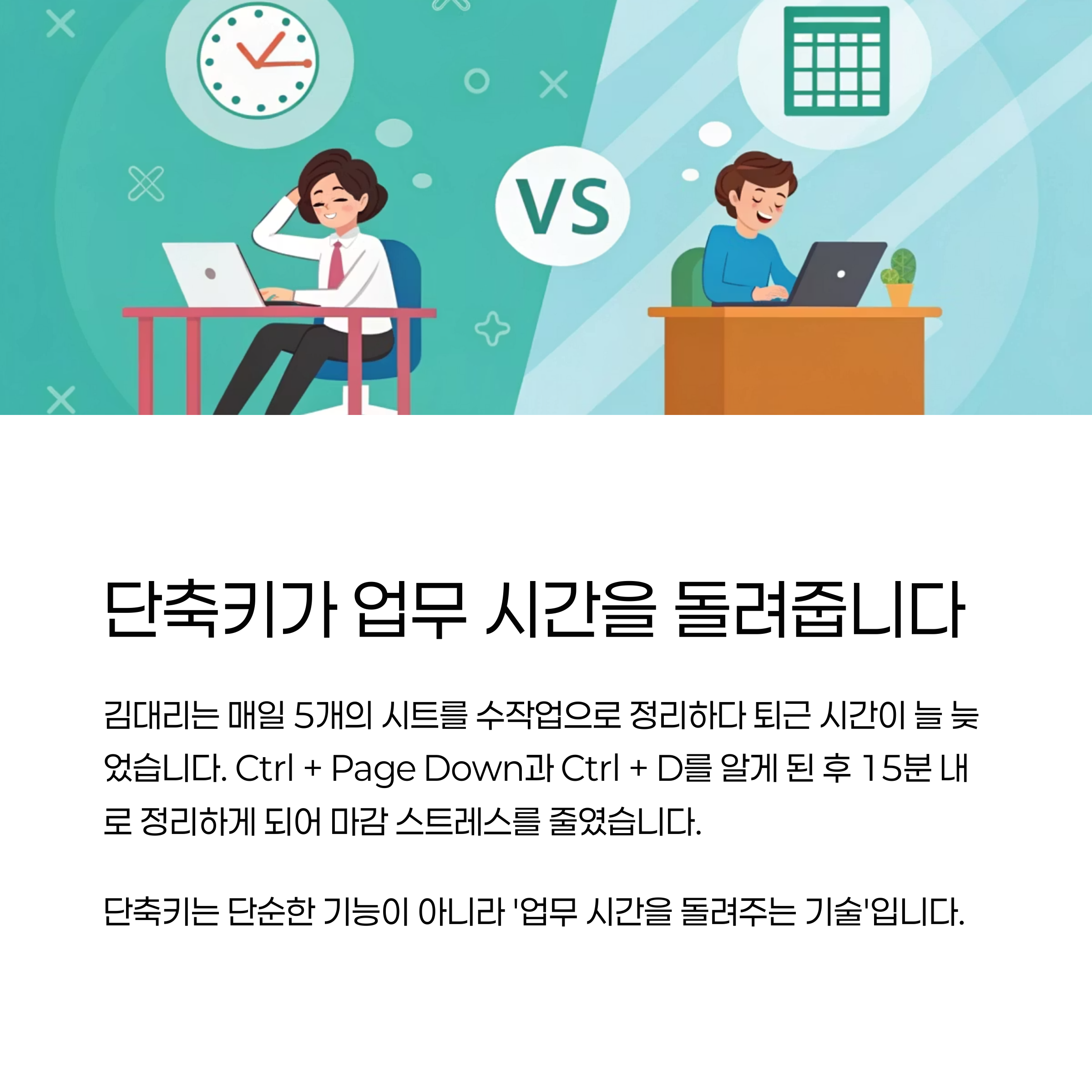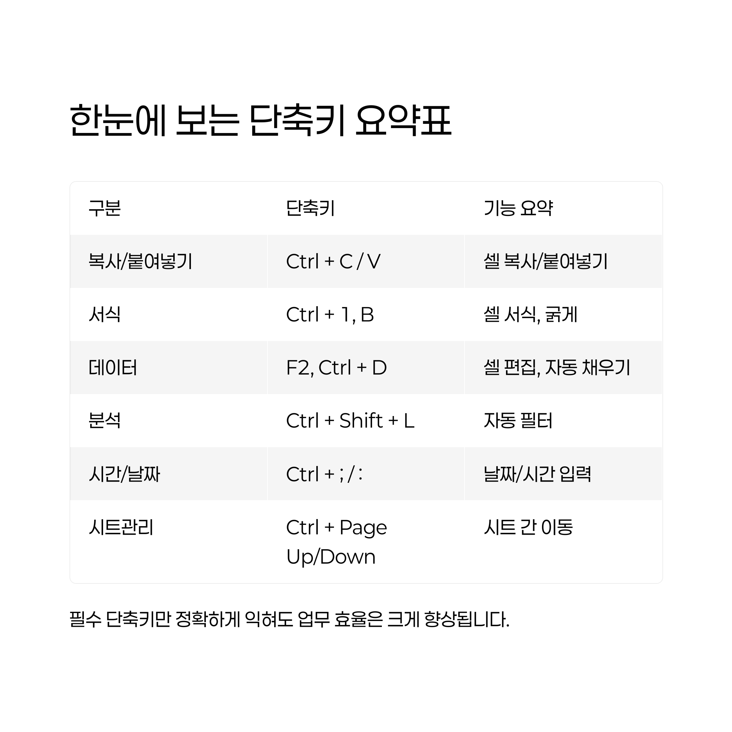단축키는 단순한 기능이 아니라 '업무 시간을 돌려주는 기술'입니다.