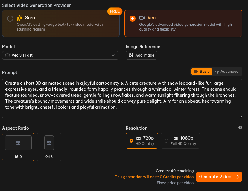 로그인을 하셨다면 바로 영상 생성을 시작할 수 있습니다. 이 사이트의 가장 큰 장점은 두 가지 모델을 효율적으로 사용할 수 있다는 점입니다.