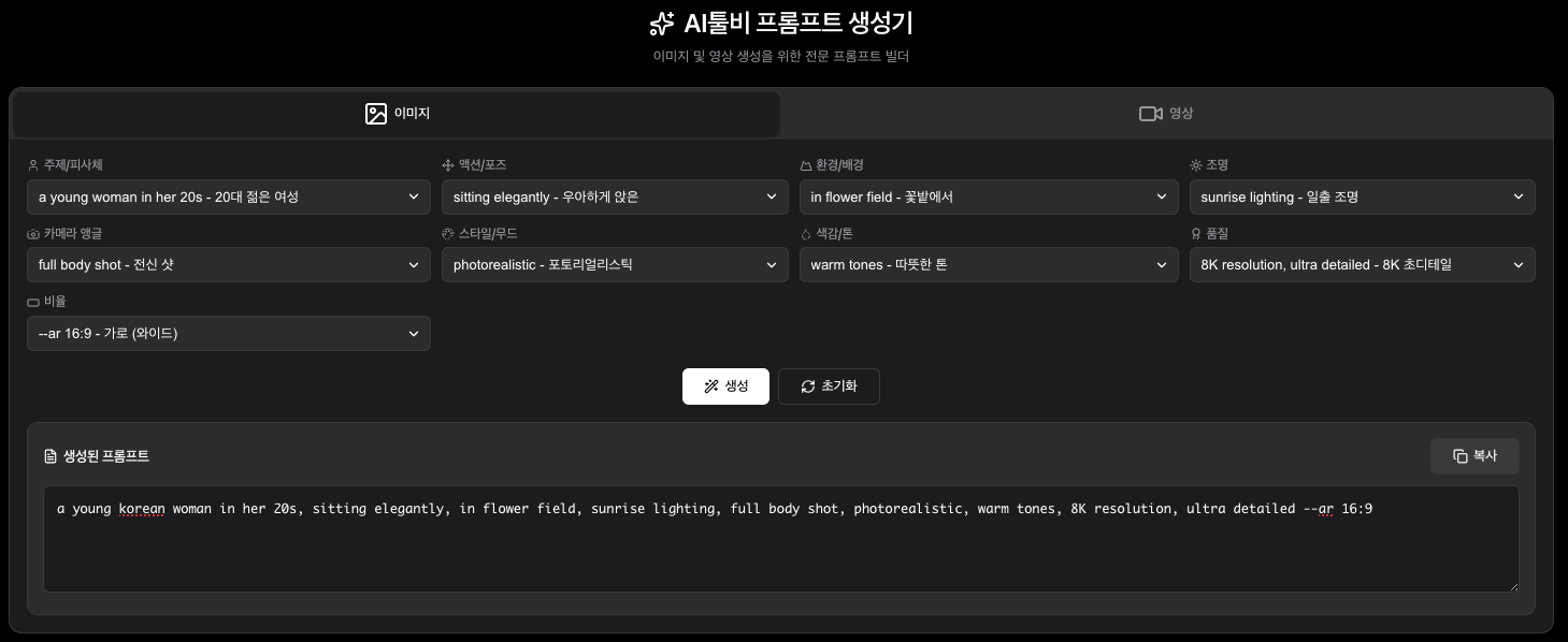 '툴비 프롬프트 생성기'는 복잡하게 느껴졌던 AI 이미지 및 영상 제작의 문턱을 낮춰줍니다.