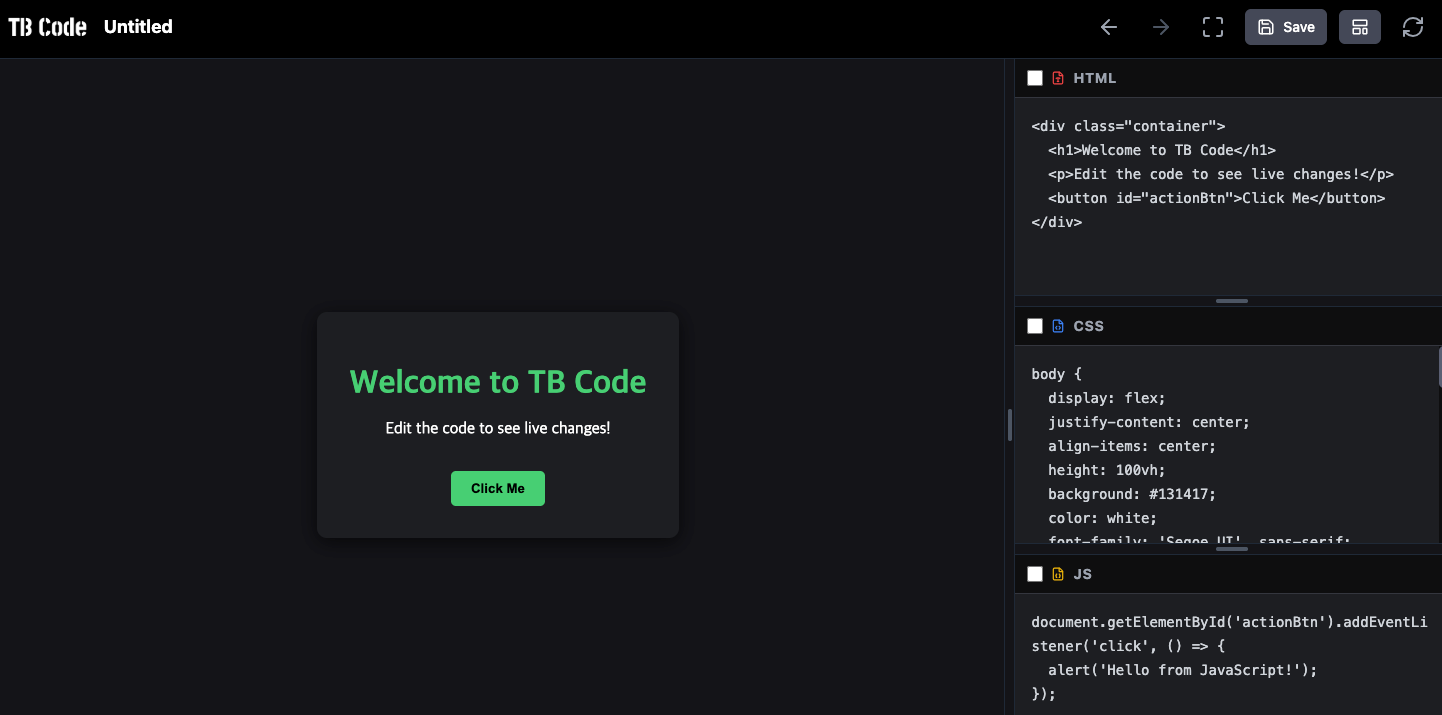 보시는 것처럼 HTML, CSS, JS를 각각의 칸에 넣자마자,